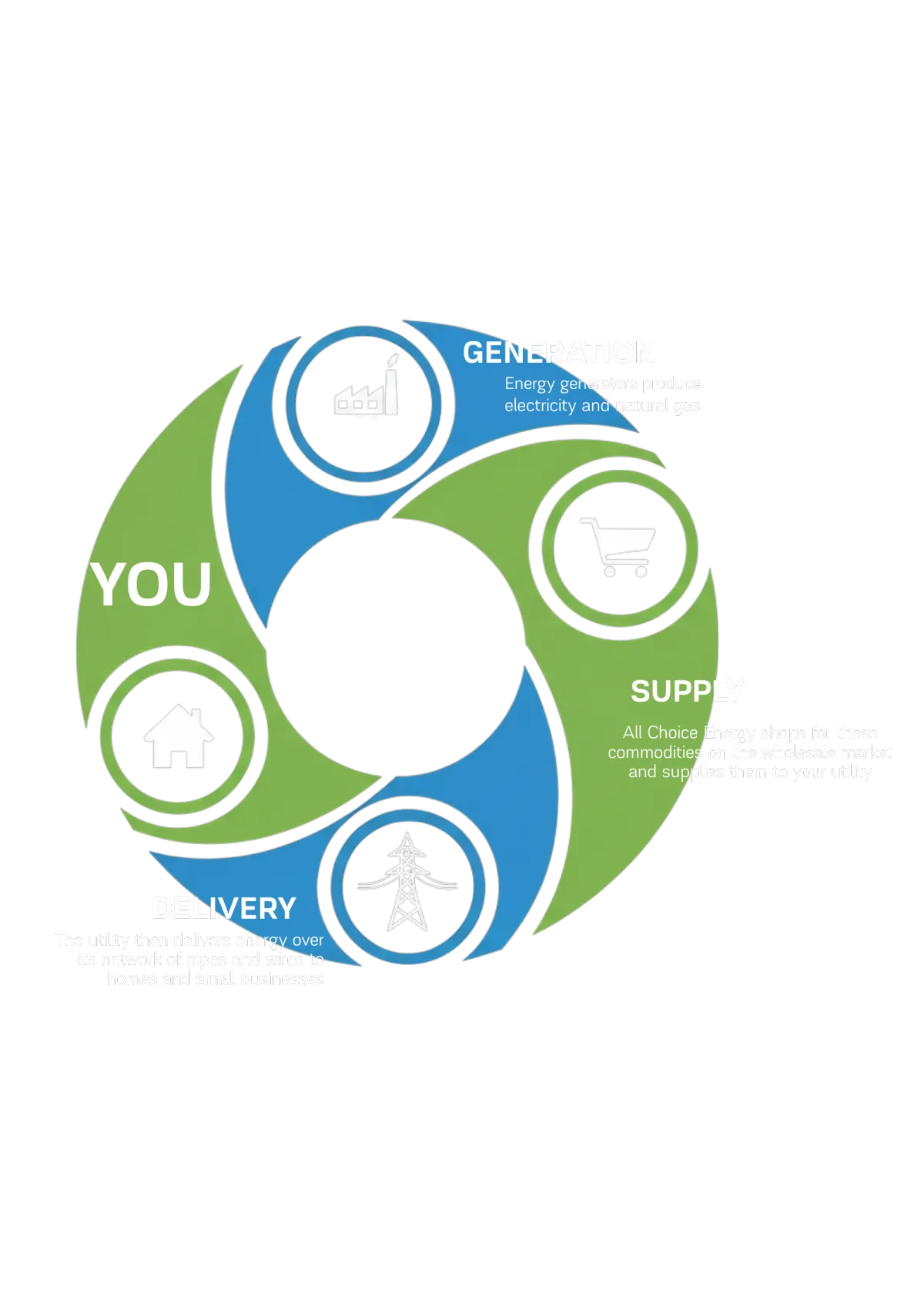 No. Switching is a purely administrative change—there is no interruption of service. Your local utility still delivers the energy and handles outages and emergencies. In most cases, you’ll continue to receive one bill from your utility, and you’ll simply see All Choice Energy listed as your supplier on the supply portion of the bill.